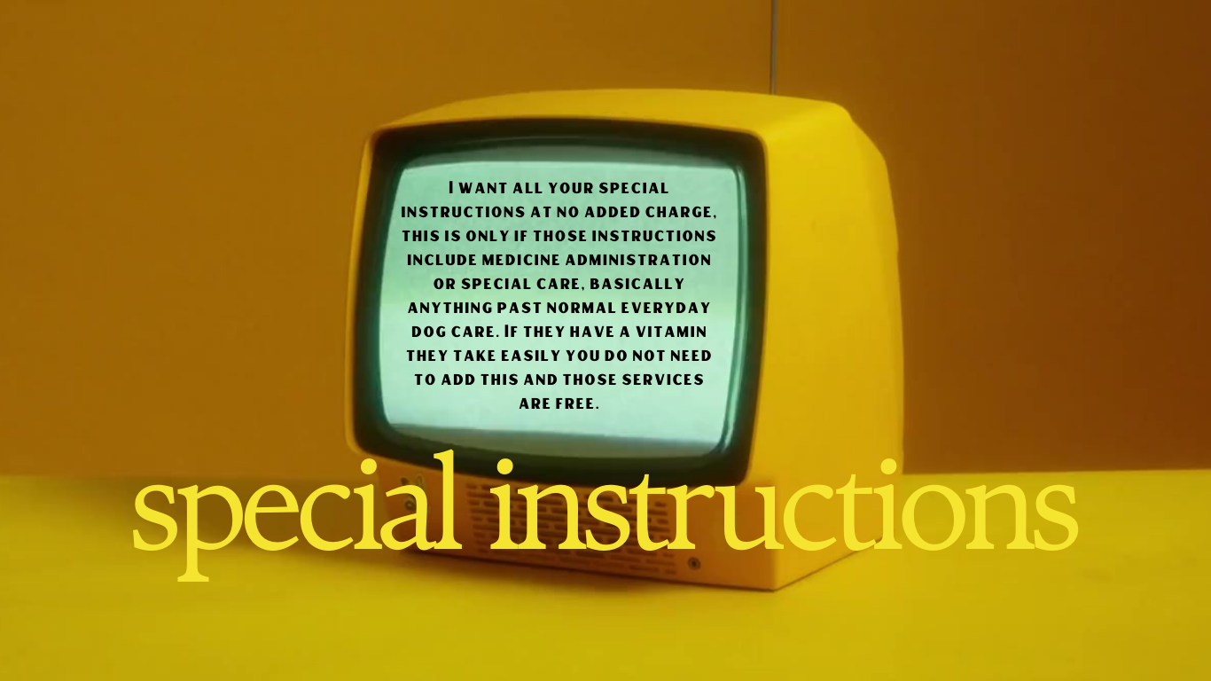 I want all your special instructions at no added charge, this is only if those instructions include medicine administration or special care, basically anything past normal everyday dog care. If they have a vitamin they take easily you do not need to ad this services and those things are free.